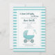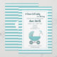 Ein kleiner Junge ist unterwegs! Lass’s dusche die Mama-to-be! Diese minimale, aber eingängige Baby Blue Dusche lädt perfekt zu diesem Anlass ein. Es verfügt über einen altmodischen, blauen Kinderwagen und einen niedlichen Vogel, der ein Herz hält. Die beiden Räder sind auch mit Herzen dekoriert. Auf der Rückseite sind ein großes Herz und blaue Streifen. Diese Baby Boy Dusche Einladungs-Vorlage kann einfach mit Ihrem Baby Duschdetails angepasst werden und Sie können den Schriftart, die Größe oder die Farbe eines beliebigen Textes ändern.