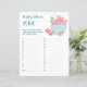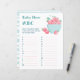 Blatt Babyduschenspielpapier mit niedlichen Erdbeeren in einer Tasse Aquarellzeichnung.