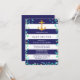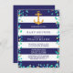 Ein festliches Design mit breiten, horizontalen, blauen und weißen Streifen, Punkte in den Farbtönen von marinen Blau und Grün sowie Gelb entlang der Grenze.  Ein goldenes Ankermotiv gibt ihm einen nautischen Flair. Personalisieren Sie diese Einladung für eine Babydusche oder Sprinkle. Diese Einladung ist ideal für Wassersport, Strand oder Ozean, und mit dem blauen und weißen Streifen ist ideal für einen Jungen.