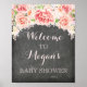 Herzlich willkommen im Baby Shower Schild Poster mit individuelle Name in einem Chalkboard-Muster mit hellrot rosa Vintagen Wasserfarben Blumenmuster.