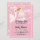 Babydusche Pink Girl Stork Wolken Party Einladung. Ändern Sie einfach den Text, um Ihr Party Anzug. Rückdruck im Lieferumfang enthalten. Siehe dazu passende Elemente in der Wow Wow Meow Collection.