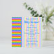 Diese individuelle Babydusche-Einladung könnte geeignet sein, wenn das Kind ein Junge oder ein Mädchen sein wird. Ein Streifenmuster in Regenbogenfarben, mit blassen Streifen hinter der Schrift. Der Text ist blau und kann personalisiert sein, um eine individuelle Einladung zu erstellen. Ein lustiges, helles und farbenfrohes Design.
