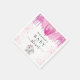 Leider ist beim Bestellvorgang nicht die Größe angegeben, zumindest habe ich es nicht gesehen. Der Name "Duschen"-Servietten ist etwas seltsam :-) Aber man kann aus verschiedenen Designs auswählen und es sieht ganz nett aus. Ich würde mir aber noch viel mehr verschiedene Farben und Muster wünschen! Insgesamt eine nette Idee für ein personalisiertes Accessoire zu allen möglichen Feiern. Der Druck ist OK, er ist nur ganz leicht unscharf.