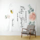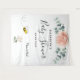 Elegantes, klassisches, modernes Baby-Duschbanner im Blumenstil, Wandteppiche, die ein kleines Mädchen feiern. Die Blume sind mit Rose, Gold, Rosa und weißen, wasserfarbenen Blumen geschmückt, und die Eukalyptusgrün. Mit dem Text: Babydusche geschrieben mit einem großen, modernen, schwarz gefärbten Handschrift. Personalisieren und fügen Sie den Namen der Mutter zu sein, und ein Datum. Kann als Begrüßungsbanner, Wanddekoration für die Babydusche oder als Foto verwendet werden. Mit einer niedlich glücklichen lächelnden Biene und dem Text: Mama zu sein!