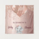 Für eine elegante Babydusche. Eine Rose Gold Imitate metallisch aussehend Hintergrund. Dekoriert mit Rose Gold, rosa Tropfen, Malertränke, Party-Raster, Ballons und einem niedlichen Elefanten-Baby. Personalisieren und fügen Sie den Namen und das Datum ein. Kann als Begrüßungsbanner verwendet werden, Wanddekoration für die Babydusche.