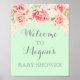 Herzlich willkommen im Baby Duwer Schild Poster mit individuelle Name in pastellfarbenem Pfefferminzgrün mit hellrot rosa Vintagem Wasserfarbenmuster.