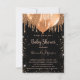 Für eine elegante, moderne Babydusche. Ein stilvoller schwarzer Hintergrund. Der vergoldete Glitzer und die Ballons sind mit dunklen Imitaten dekoriert. Personalisieren und fügen Sie einen Namen und Party-Details. Der Name wird mit einem handgeschriebenen Stilskript geschrieben. Geschlechterneutral.