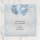 Ein Imitat silber metallisch aussehender Hintergrund. Mit blauen Imitaten dekoriert Glitzer Staub und Ballons. Personalisieren und fügen Sie einen Namen und ein Datum hinzu. Der Name wird mit einem handgeschriebenen Stilskript geschrieben. Zurück: Fügen Sie Ihrem Dankeschön Notiz.