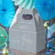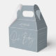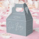 Babydusche schlichte, elegante Schrift modern staubig blau mit geometrischen Mustern Gefallen Box Party Design. Ideal geschlechtsneutrales Design.