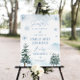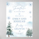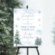 Eine kleine Schneeflocke ist auf dem Weg Willkommensschild Poster Baby Dusche blauer Winter Wunderland Willkommensschild mit Schneeflocken und Kiefern.