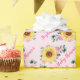 Dieses Babyduschverpackungspapier zeichnet sich durch eine Aquarellsonnenblume und rosa Rosen aus, die mit Blattwerk und Blätter auf rosa Untergrund versehen sind. Personalisieren Sie es mit einem Namen.