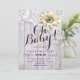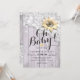 Kinderdusche Einladungskarten Vorlagen - Vintage Spitzen, Sonnenblumen und Streichelleuchten auf rustikalem Holzhintergrund. Alle Textstile, Farben, Größen können an Ihre Bedürfnisse angepasst werden.