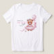 Babydusche T - Shirt für Frauen mit einer bezaubernden Aquarellbilder eines Teddybären in einem niedlich rosa Kleid.