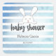 Babydusche Tan White Bunny Blue Strip Quadratischer Aufkleber