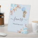 Babydusche Teddy Bär blaue Pampas Gras Gefälligkei Sockelschild