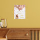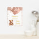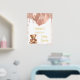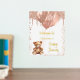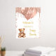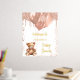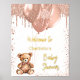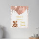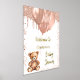 Ein Begrüßungspposter für eine elegante und moderne Babydusche. Ein weißer Hintergrund, ein Teddybär mit goldfarbenen Ballons in der Rose. Personalisieren und einen Namen hinzufügen. Text: reale Goldfolie.