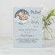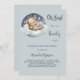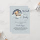 Für eine Babydusche, die einen kleinen Jungen feiert. Ein blauer grauer Hintergrund. Ein niedlicher Teddybär, der auf einer Wolke schläft. Personalisieren und fügen Sie den Namen der Mutter zu sein und Party-Details. Der Name und der Text: Oh Junge! und Bearly sind mit einem handgeschriebenen Stilskript geschrieben.