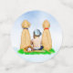Babydusche Konfetti. Holen Sie sich einen für jedes Familienmitglied! Niedliche Jungs und zwei gelbe Labrador Hunde mit Baseballkappe, Baseballhandschuh und Baseball und Fledermaus, die auf einem Baseballfeld zusammen im Gras sitzen. Dies ist ein niedliches Thema für eine Kinderdusche im Frühling oder Sommer.