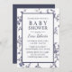 Babydusche Vintag Blau & Weiße Blüte Einladung