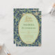 Diese blau-grüne Babydusche ist geschlechtsneutral und kann sowohl für einen Jungen als auch für ein Mädchen verwendet werden. Der Text ist in einem hellgrünen Oval, mit goldener Grenze, mit goldenen Buchstaben geschrieben, mit Ausnahme des Namens, der grün ist. Der Anlass "Baby Shower" ist in einem kalligrafischen Skript geschrieben, die Erholung in Kappen. Der Hintergrund (und die Rückseite) ist das Wallpaper Muster "Bird and Pomegranate" von William Morris (1834-1896), jetzt im öffentlichen Bereich. Auf den Zweigen gibt es Granatapfel mit grünen Blätter auf dunkelblauem Hintergrund wie am Nachthimmel. In den oberen und unteren links Ecken gibt es zwei Vogelarten.