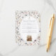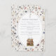 Diese Blumenkarte ist für ein Baby-Dusche-Event mit dem Thema "Neues Kapitel". Lass deinem Gast, dass du wünschst, dass er ein Buch mitbringt, damit das Kind kommen kann. Die Karte zeigt Abbildungen im Hintergrund von Frühlingsfarben in sanften Wildblumen. Klassischer deutscher Schriftart für ein Gefühl alter Kinderbilderbücher.