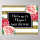 Babydusche Willkommen Schwarz Gold Rosa Blüte Poster