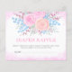 Pastellfarbener Strauß mit rosa Rosen, blauen Blätter, beige Zweige mit rosa Knospen und grünem Gras. Heiß rosa Schrift. Rosa Wasserfarbe in Rosa fällt. Elegantes, modernes, festliches, mädchenhaftes Aquarell-Design, ideal für die Babydusche.