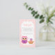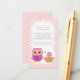 Ermuntern Sie die Gäste, ein Kinderbuch für Ihre Kleine mit dieser niedlichen Karteneinlage zu bringen, die Sie Ihren Einladungen hinzufügen können. Es hat ein niedliches Eulenpaar. Die Muttereule liest ihrem Baby-Uhu ein Gutenachtbuch, das eine Nachtmütze trägt und schön im Nest schnauzelt. Ein klassischer Zickzack Zickzack-Hintergrund und eine süße Farbwahl von Rosa und lila machen ihn zu einem idealen Ort für Mütter, die kleine Mädchen haben.
