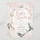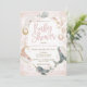 Unter dem Meer Babydusche Einladungen für ein süßes Mädchen! Diese Einladungen werden perfekt sein, um die Mutter zu feiern, um zu sein! Diese Einladungen sind mit Aquarellmalungen von Meerestieren auf einem rot-rosa Aquarellboden versehen. Die Worte "Babydusche" sind in einem eleganten Kalligraphie-Schriftart geschrieben.