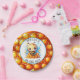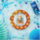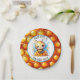 Ja, es ist ein Baby-Junge-Duschpapier-Teller. Niedliche Wasserfarbe Honigbienendusche. Adorable Babybiene sitzt auf Honigwabe. Die Farben sind hauptsächlich blau, schwarz und gelb.