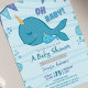 Party wie ein Narwal! Feiern Sie Ihren kleinen Geburtstag mit unserer Adorable Narwhal Party Einladung. Dieses niedliche Einhorn der Narwhal Babydusche bietet einen Narwhal und ihren kleinen Narwhal, der auf einem blauen Meeresschaum schwimmt. Die Party Einladungen des Sommerbeckens eignen sich perfekt für Ihre Narwal-Themenabende, Ozeankonzert, Wassermassage, Babydusche mit Meerblick, Babydusche mit Meerblick.