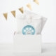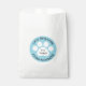 Diese Gefälligkeitstaschen zeigen einen weißen Pfotendruck auf blauem Hintergrund und den Text "It's twins!" zusammen mit den Babynamen. Sie eignen sich hervorragend für gepflasterte Motive, Hunde- und Katzenthemen oder Duschen zum Thema "Baby".