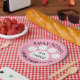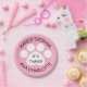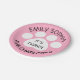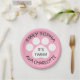 Diese Teller zeigen einen weißen Pfotendruck auf rosa Untergrund und den Text "It's twins!" zusammen mit den Babynamen. Diese Teller eignen sich hervorragend für gepflasterte Kleidung, Hundeschema, Katzenmassage oder Babyduschen mit Tiermotiv.