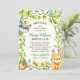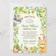 Eine bezaubernde, bewaldete Babydusche. Diese geschlechtsneutrale Babydusche lädt mit hübschen hand Waldtieren ein, darunter ein süßer, kleiner Fuchs, ein lächelnder Raccoon, zwei singende Vögel und sogar ein niedlicher winziger Igel. Ein Kranz aus üppigem Wald umrahmt die Details der Babydusche. Einfach mit Ihren Duschinformationen personalisieren.