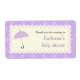 Die skalkulierten Kanten spiegeln die Kurven des Untergrunds des Regenschirms auf diesem niedlichen Babyduschetikett wider. Es verfügt über einen pastellfarbenen, lila Schirm auf einem cremefarbenen Rahmen mit geschmolzenen Kanten. Alles sitzt auf einem gemusterten Hintergrund mit lila Blume. Das ist ein hervorragendes Etikett, um Siegel Taschen zu bevorzugen oder den Text so zu ändern, dass er jedem Zweck gerecht wird. Erhältlich in alternativen Farben mit passenden Produkten.