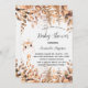 Für eine Babydusche, geschlechtsneutral. Weiße Hintergrundfarbe, niedliche kleine Babygiraffe und goldene Eukalyptusbäume und Waldfarne. Personalisieren und fügen Sie den Namen der Mutter zu sein Name und Party Details. Der Name und der Text: Baby Shower wird mit einem handgeschriebenen Stift geschrieben