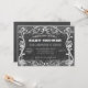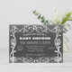 Eine Vintage Retro-Look Kalkboard Baby-Duschvorlage mit Zierdesigns und Blume und winzigen Kreise von Glitzer gezeichnet auf das Brett. Design von Amelia Carrie Weitere Einladungen finden Sie unter GlitterInvitations.com oder zazzle.com/glitterinvitations