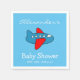 Personalisierte Babydusche mit niedlichem Spielzeugflugzeug. Farbenfrohe Gestaltung des Flugzeug mit Geburtsdatum oder Feier. Adorable Kinder Luftfahrt Thema Luftfahrt Illustration. Erstellen Sie Ihre eigenen extravaganten Babydusche-Servietten mit individualisierbarem Text. In pastellfarbenen hellrosa lila-gelb-grau etc. Niedliche Idee für junge Mutter, Mutter sein. Auch Spaß für Kinder 1. Geburtstag Party.