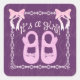 Niedlich Lila Es ist ein Mädchenaufkleber mit rosa Babyschuhen und zwei Bögen.