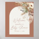Das kleine Babyduschpampas Gras und der Eukalyptus sind modern und elegant mit Party dekoriert. Zeitgenössischer Terrakotta Rost, Salbei Grün und natürliche Beige Farbgebung.