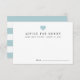 Mit diesen süßen Karten können Sie sich bei ihrer Babydusche beraten lassen. Das blass-weiße Design für unterwegs kleine Jungen zeigt oben eine Herzenssymbole mit "Advice for Mommy" und Name und Duschdatum. Durch viel Platz können Lieben ihre Weisheit teilen und ihren Namen unterschreiben. Platzieren Sie einen Stapel am Eingang des Party, verließ einen an jeder Stelle, oder geben Sie ihn durch. Die abgeschlossenen Karten sind ein süßer Sake für den Ehrengast!