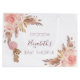 Für eine böhmische Babydusche. Ein weißer Hintergrund. Die Rose ist goldgelb, die Blumen rosa, die Pampas gras und der Teddybär sind rot. Personalisieren und fügen Sie ein Datum, einen Namen.