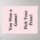 Sie haben ein Spiel gewonnen, wählen Sie einen Preis! Das ist es, was dieses Schild sagt. Gut geeignet für Babydusche, Hochzeit oder Party. Rosa mit weißen Polka-Punkten.