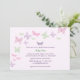Fliegende, handgezeichnete Schmetterlinge schmücken diese Einladung und erinnern uns an Babyflutter. Es wird auf dem Basispapier gezeigt; Ich empfehle jedoch das Gewicht und die Textur des Leinenpapiers.