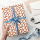 Orangefarbene Babyschaumpapier für Halloween-Babyduschengeschenke mit einem Muster niedlicher Babygeister mit orangefarbenen und grünen Schnullern auf einem passenden orangefarbenen Hintergrund, sodass das neutrale Wickelpapier perfekt passt, unabhängig davon, ob sich das kleine Baby-to-be-Baby als Mädchen oder Junge herausstellt.