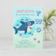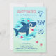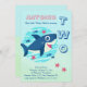 Zwei Jahre Junge Geburtstag Ozeanblauer Babyhai Einladung mit einem niedlichen kleinen Hai Schwimmen unter Wasser mit Fischen und roten Sternen. ++++++++++++ Einfach mit dem Namen und dem Party Ihres Kindes personalisieren.