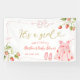 Babykleidung Rosa Coquette Beere Süße Babyparty Großes Banner, Erdbeeren-Babyparty, Rosa Schleife Es ist ein Mädchen Babyparty, Bearbeitbare Mädchen-Babyparty