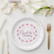 Babymädchen Taufrosa u. weiße Blumenplatte Pappteller