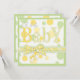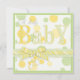 Fun dot print mit koordinierter Stripe Band und neuartigen 3D-Look Baby-Schnuller-Trimmings in Gelb und Grün Babydusche Einladungskarte.
