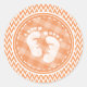 Niedliches, individuelles Babyfußdesign auf Orange und White Zickzack Stripes Mustern. Neutrale Babydusche oder Babysprinkle-Design für kleine Kinder oder Mädchen, die Sie personalisieren können. Besuchen Sie unser Geschäft, Favors und Dekor, für viele großartige Party Geschenke und Dekorationen für Goody Taschen Füllung und Dekoration. Vielen Dank!